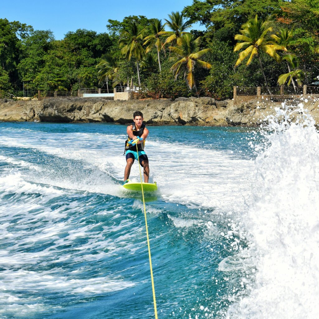 Experience the thrill of wakeboarding on Zanzibar’s crystal-clear waters with 10-minute rides or tailored lessons for all skill levels.